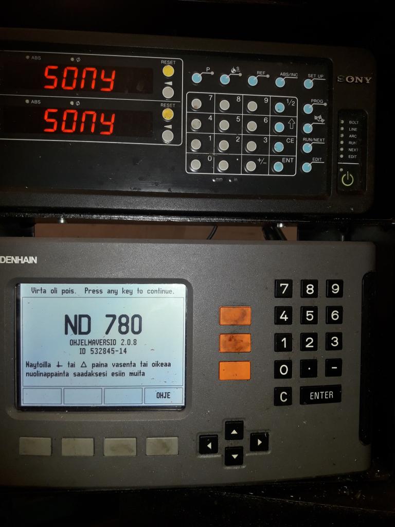 Pyöröpöytä/jakolaite 500mm ja kärkipylkkä edelliseen. Dikitaaliset näytöt kaikille liikkeille.